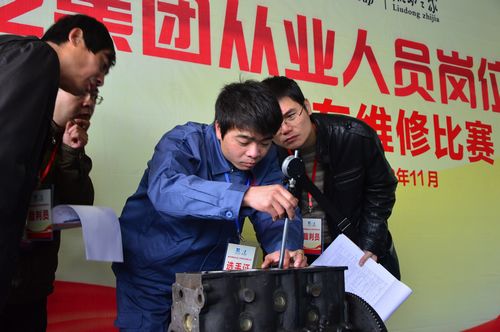 11月28日上午8點半,客車維修操作比賽在快客分公司修理車間首先開賽了。客長運分公司、快客分公司各選派出4名參賽人員。比賽的要求是比賽人員分別在30分鐘的時間里,完成單缸活塞連桿組的拆裝與測量,即熟練拆開汽缸筒活塞連桿組和活塞三道環,接著用工具進行仔細檢查和測量,同時填寫了檢查測量記錄表,最后裝復。8名參賽人員逐一展開技能比武,看誰能在規定時間內又快又好地完成比賽內容,再以完成的質量和操作用時短決出實際操作成績。因為還未理論考試,所以,昨天的比賽不能評出總成績。