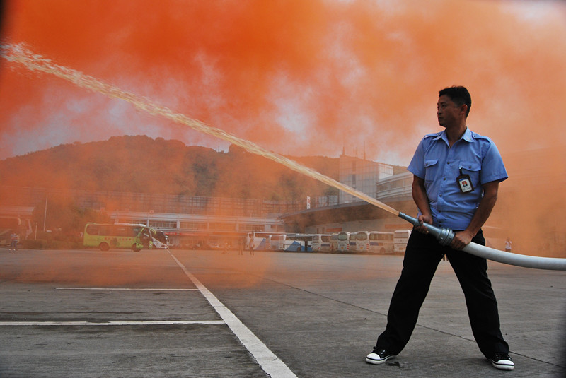 演練項目包括遇火情車輛疏散模擬演練、明火水槍滅火、明火滅火器滅火三個項目。通過應急演練,提高了義務消防隊員在遇火情時的實戰能力。