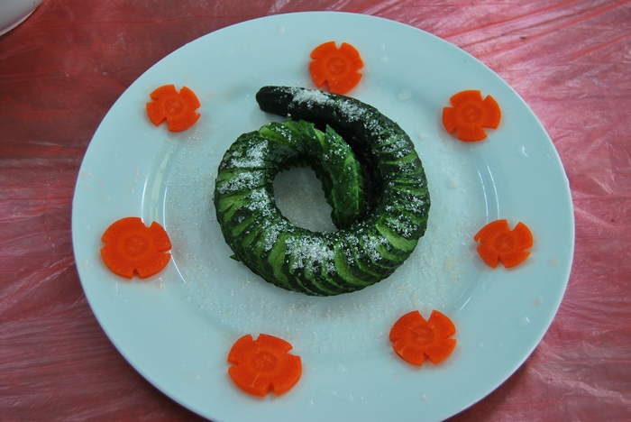 今年的女工廚藝大比拼一共吸引了集團公司各單位和離退委的12支隊伍參加,5人一組,5個女工在組里各司其職,分為洗菜、切菜、烹飪、輔助等崗位。按照規定,每組必須根據組委會提供的原材料,在規定的時間內,制作出14道菜。