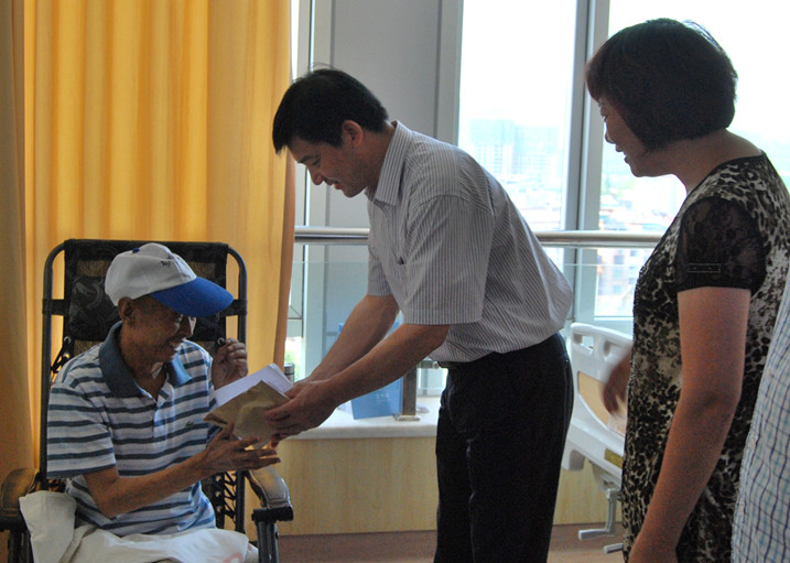 7月25日集團公司黨委副書記、副總經理薛和有、工會主席呂麗君專程前往醫院看望慰問了張紅太,并帶去了全公司738位員工為其捐贈的愛心款28060元。