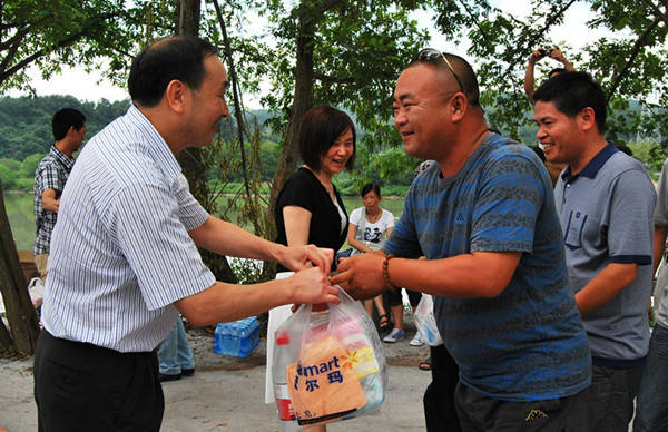 7月28日上午,麗水市總工會黨組書記、常務副主席張為社、副主席葉云妹及市總工會有關部室領導冒著酷暑帶著慰問品來到位于蓮都區聯城鎮蘇埠村的麗汽集團汽校訓練場慰問工作在一線的汽校教練員。