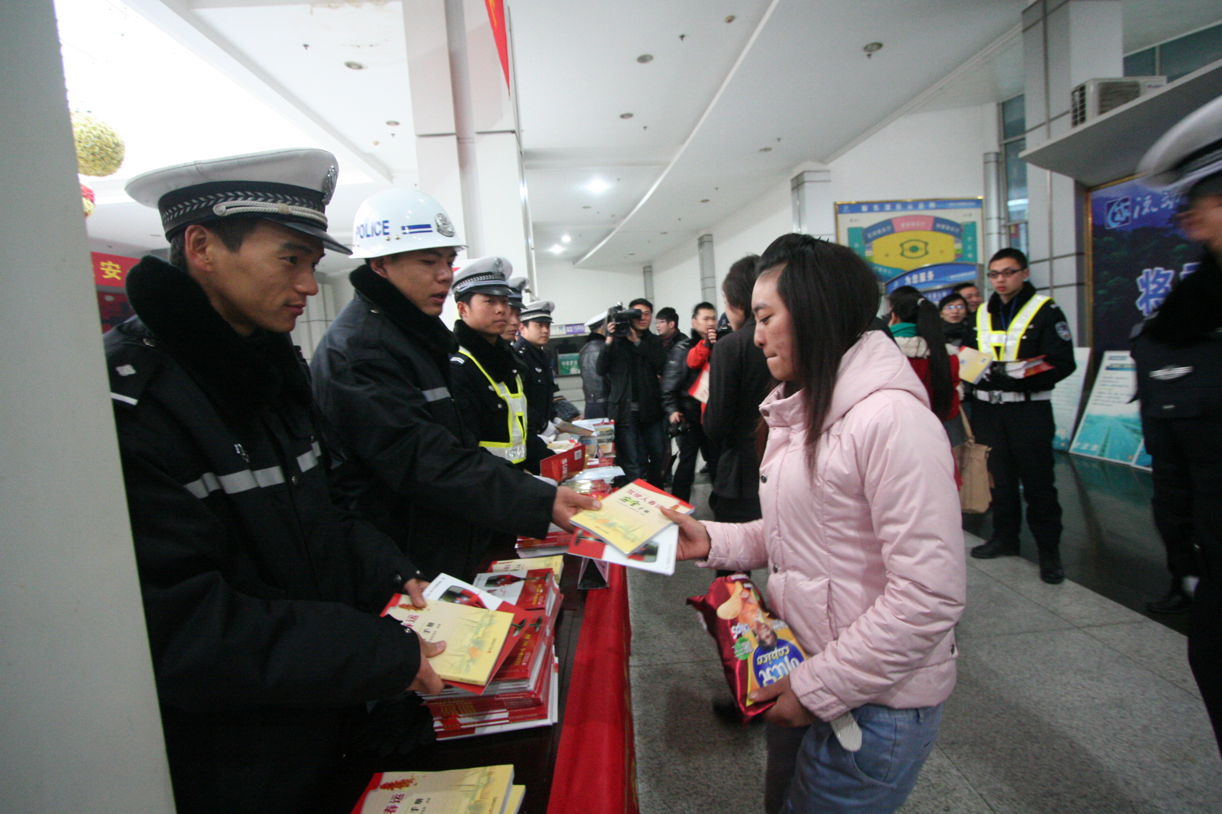 春運首日,麗水市交警支隊、高速交警麗水支隊、麗水市運管處、麗水交通音樂頻率四家單位聯合客運東、西站在兩站候車廳開展春運首日暨平安春運問計于民宣傳咨詢活動。活動現場,設立了交通安全宣傳窗,高速交警進行了調查問卷活動。四家單位除了通過派送春節禮包、新年掛歷、福字等形式送上新年祝福同時,還向旅客發放了《駕駛人春運安全手冊》、《珍愛生命 拒絕酒駕》、《平安出行 快樂駕車》、《新手上路必讀》等宣傳圖冊,向大家倡導“平安春運,人人有責”的理念。