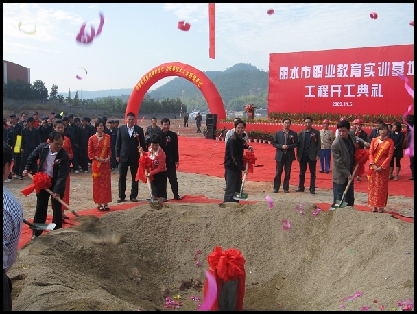 11月5日上午,在陣陣禮炮聲中,市重點工程--麗水市教育實訓基地正式開工建設。麗水市委副書記、市長盧子躍、副市長廖思紅等領導出席開工典禮。