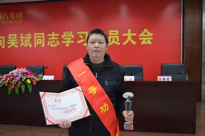 集團公司黨委書記、董事長陳建敏,常務副總經理何赤詮為吳斌同志頒發榮譽證書、獎杯及獎金。