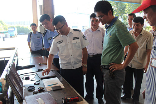 為貫徹落實公安部交管局《關于組織開展道路交通安全大檢查交叉檢查的通知》精神,推動全面開展道路交通安全大檢查活動,督促各地落實“零容忍、全覆蓋、嚴執法、重實效”要求和有關重點工作措施,7月23日下午,公安部道路交通安全大檢查異地交叉檢查組蒞臨麗水市運輸集團有限公司檢查指導安全生產工作。市公安局副局長、交通警察支隊支隊長陳志斌,集團公司總經理薛和有陪同檢查。