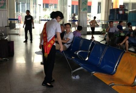 踏進站前廣場,你會看見保潔員拿著掃把、簸箕不停的巡視,及時的清理;買票時,你會時不時看見保衛稽查人員拿著長柄鑷子在清理;候車時,推著服務車的西站服務班工作人員在為旅客提供服務的同時也拿著長柄鑷子清理地上的垃圾;上車時,你還會在發車區看見檢票員跟調度員在發車間隙拿著長柄鑷子及時清理正在上車的旅客丟下的垃圾。不遠處的場地上,是拿著鑷子和垃圾袋的值班站長的身影。