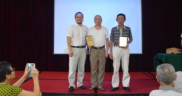 葉茂書記還親手為離退休黨員徐時聽、曾樹生兩位黨員送上了“光榮入黨五十周年”紀念牌,并號召大家要以老黨員為標桿,學習他們堅韌不拔的精神和堅定不移的信念,認真落實“兩學一做“、”不忘初心、繼續前進”,做一名合格的共產黨員。
