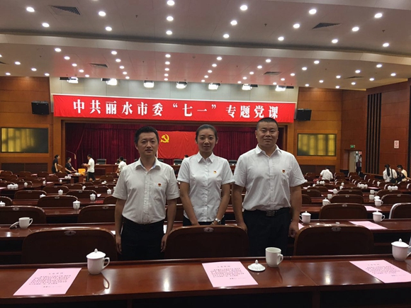 為迎接黨的96周年華誕,2017年6月27日上午,中共麗水市委組織部在市行政中心130報告廳組織開展了一次生動的“七一”專題黨課視頻會議,麗汽集團新黨員代表章雙林、莫森、葉珂應邀參加黨課學習,和現場60名余名參加儀式的新黨員在黨旗前莊嚴承諾。