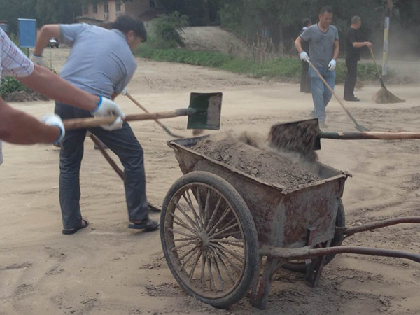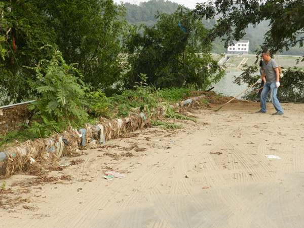 抗災自救系列報道--汽校黨支部組織清掃蘇埠場地洪水留下的泥沙