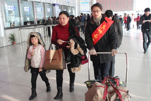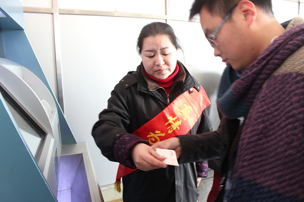 隨著2月4日“青春志愿行,溫暖回家路”2015年志愿者服務(wù)春運(yùn)“暖冬行動(dòng)”的啟動(dòng),2月5日,客運(yùn)西站黨員志愿者服務(wù)隊(duì)和“流動(dòng)之家”志愿者服務(wù)隊(duì)也正式拉開(kāi)志愿者服務(wù)春運(yùn)“暖冬行動(dòng)”的序幕。志愿者們將在整個(gè)春運(yùn)期間,在售票廳、進(jìn)站口、服務(wù)臺(tái)等位置,為旅客提供咨詢、引導(dǎo)、扶老攜幼,自助售票導(dǎo)購(gòu)等服務(wù)。