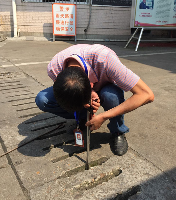 江經理蹲下身子,在大媽掉落身份證的地方仔細地查看,由于陰溝離地面有80公分左右,而且光線較暗,而當天的溫度高達32度,陽光非常強烈、刺眼,從無比強烈的光線下往黑暗處看,無疑是加大了尋找身份證的難度。觀察、尋找了二、三分鐘,還是不見身份證的蹤影,江經理突然靈機一動拿出手機,打開手機里的手電筒往陰溝里照,這招果然有用,沒一會兒就看到了身份證,在鎖定了身份證的方位后,江經理打算把水泥板撬開,可是試了試后就決定放棄了,水泥板實在太重了。江經理又找來一把鉗子和一根鋼筋,可是水泥板上的縫隙實在太小剛夠鉗子伸進去,狹小的縫隙令鉗子的操作空間受到了很大的限制,身份證好幾次被夾起,準備往上提時又滑落了下去。20分鐘過去了,太陽底下的江經理已經是滿頭大汗。期間有路過的駕駛員勸江經理不要撿了,讓旅客自己再去補辦一張就是了。可是江經理搖搖頭,他還是常說的那句話“旅客的事情無小事,我們要盡自己最大的努力,服務好每一位旅客。”