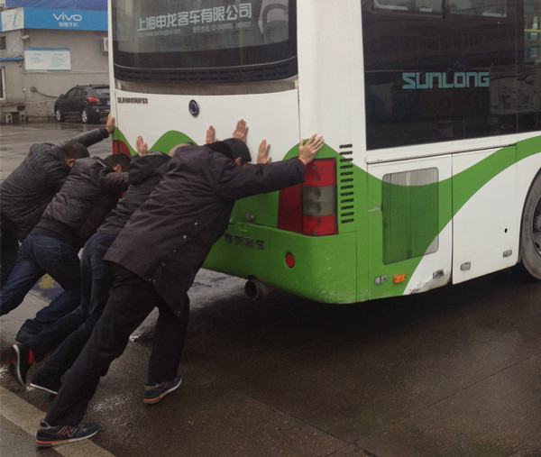 早上6時40分,開207線路的公交司機高師傅來到客運東站站前廣場,和往常一樣,準(zhǔn)備出車。插入鑰匙,轉(zhuǎn)動啟動按鈕,之前的發(fā)動機轟鳴聲卻沒聽到,連續(xù)轉(zhuǎn)了幾次,車子還是沒反應(yīng),高師傅心里隱隱覺得肯定是出問題了。經(jīng)過檢查,發(fā)現(xiàn)是由于天氣太冷,電瓶電力不足無法啟動。他馬上打電話找來了車隊的兩名同事,一人把方向盤,兩人推車,可車子移動過于緩慢,根本不可能通過人工打火啟動。就這樣,207路的公交車停在了東站站前廣場的中央占著通道,影響了出站的交通。