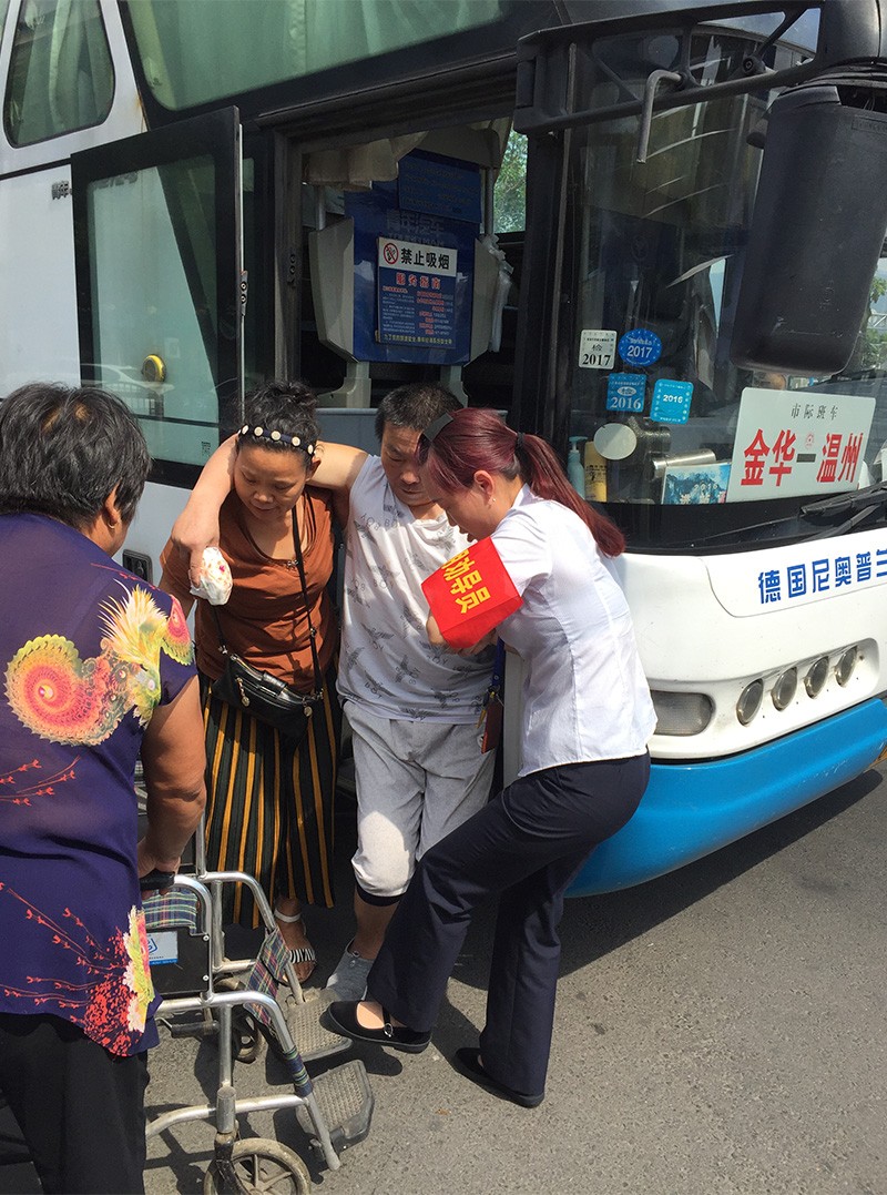 攙扶行動(dòng)不便的乘客上車